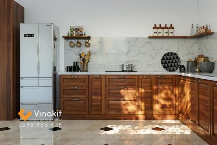 Tủ bếp Inox Cánh Gỗ Óc chó – IC03